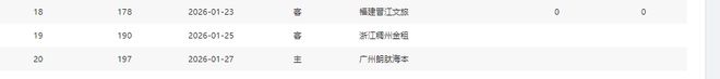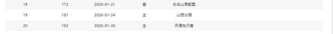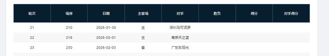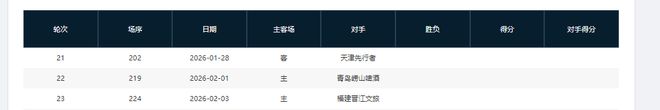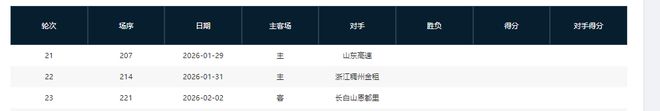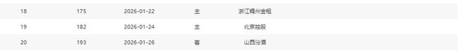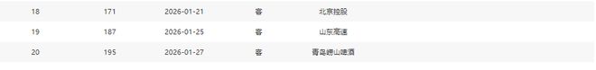 分別是客戰吉林(暫居第13)、主場戰山西(暫居第8)、主場戰天津(暫居第16)、主場戰吉林(暫居第13)、客場戰寧波(暫居第11)、主場戰上海(暫居第2)