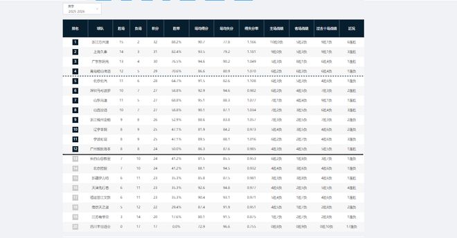 CBA25-26賽季第一階段共23輪比賽。