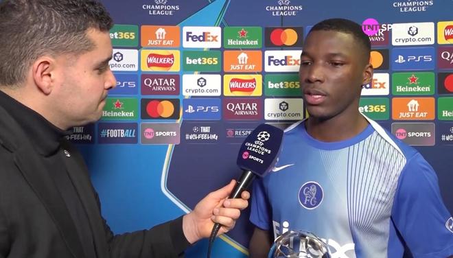我們現在在倫敦斯坦福橋,和莫伊塞斯-凱塞多在一起。這座非常漂亮的獎杯是本場比賽的最佳球員獎。非常感謝你抽出時間。祝賀你獲得這個獎項,也祝賀你在歐冠中進球。你現在的感受如何?